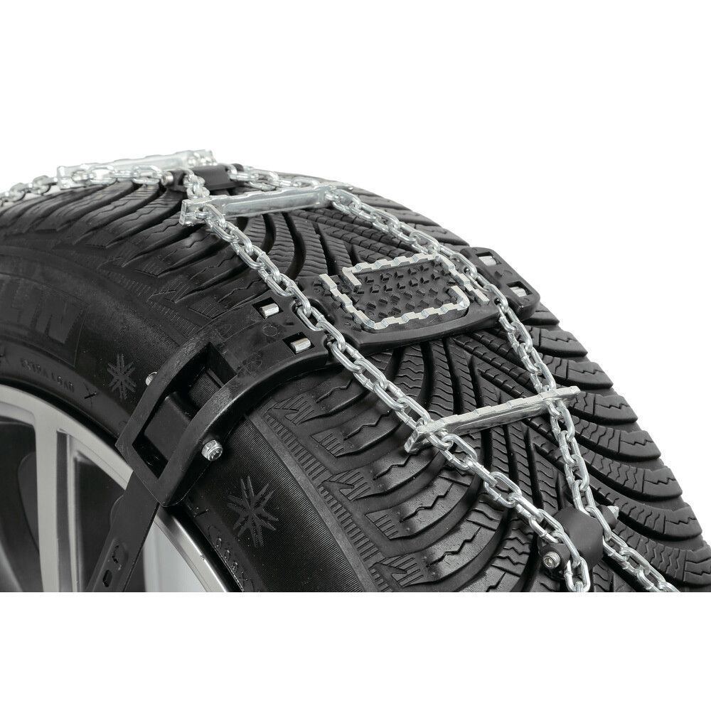 Η αλυσίδα διαθέτει ειδικό σύστημα δέσης που κουμπώνει πάνω σε ένα από τα μπουλόνια της ζάντας (συμβατές με εξάγωνα μπουλόνια και μπουλόνια 17, 19, 21 και 22 mm) – ΠΡΟΣΟΧΗ! Δεν μπορούν να τοποθετηθούν επάνω σε μπουλόνι ασφαλείας (αντικλεπτικό). Εύκολη και γρήγορη εφαρμογή, σφίγγουν αυτόματα κατά την οδήγηση, δεν χρειάζονται επιπλέον στάσεις για να σφίξει ο οδηγός τις αλυσίδες χειροκίνητα ενώ έχουν σύστημα άμεσης απελευθέρωσης.